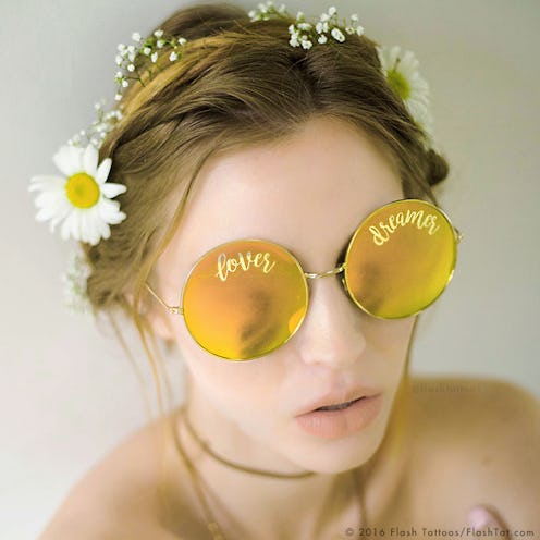 A company known for selling temporary tattoos that'll take your music festival game to the next level has now come out with the perfect way for you to express yourself on a daily basis. It involves temporary tats, but we’re not talking ones that are made for your skin. Find out where to buy the new sunnies by Flash Tattoos so that you can wear your feelings on your mirrored sunglasses. Because that’s just the trendy thing to do isn’t it?
