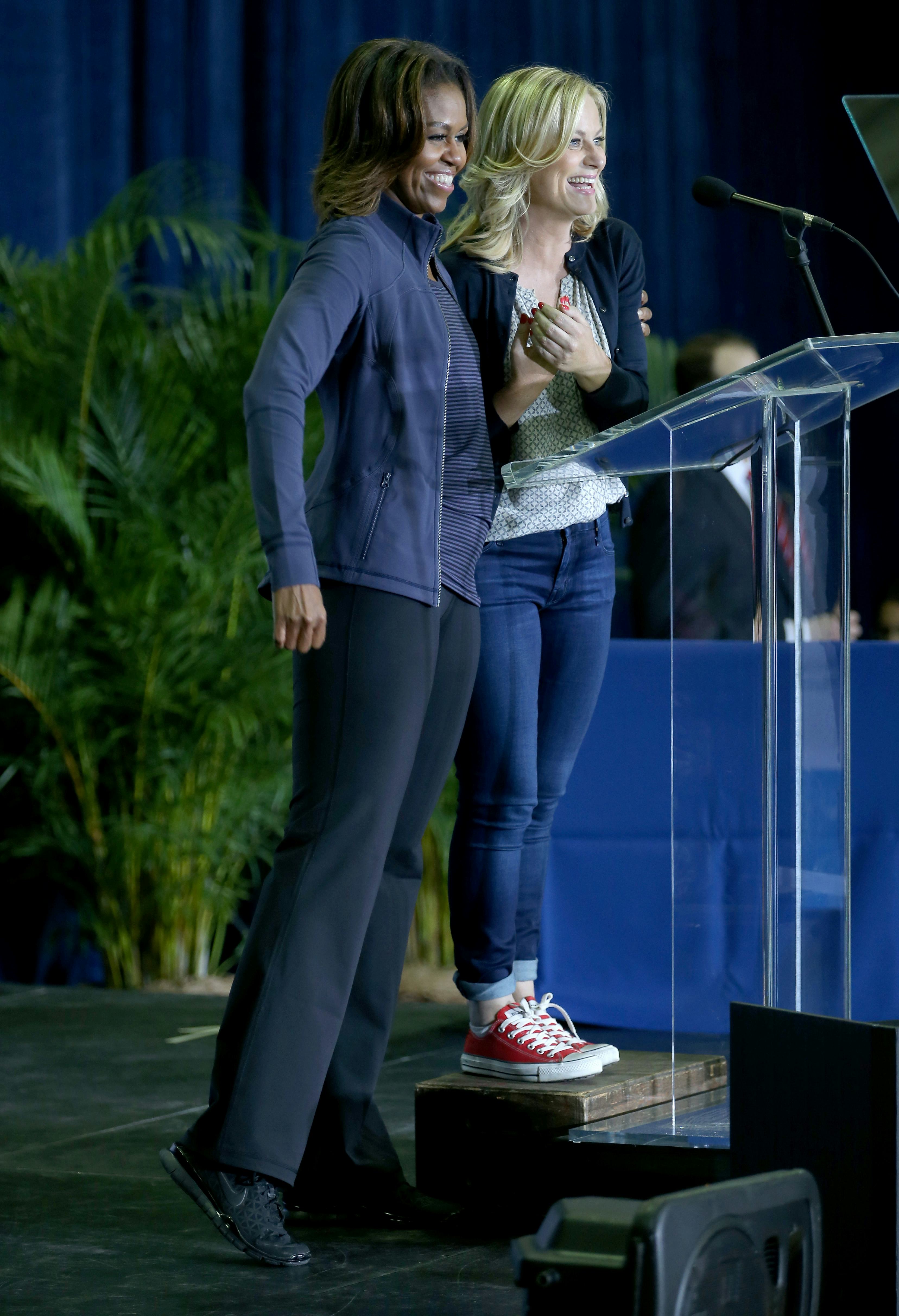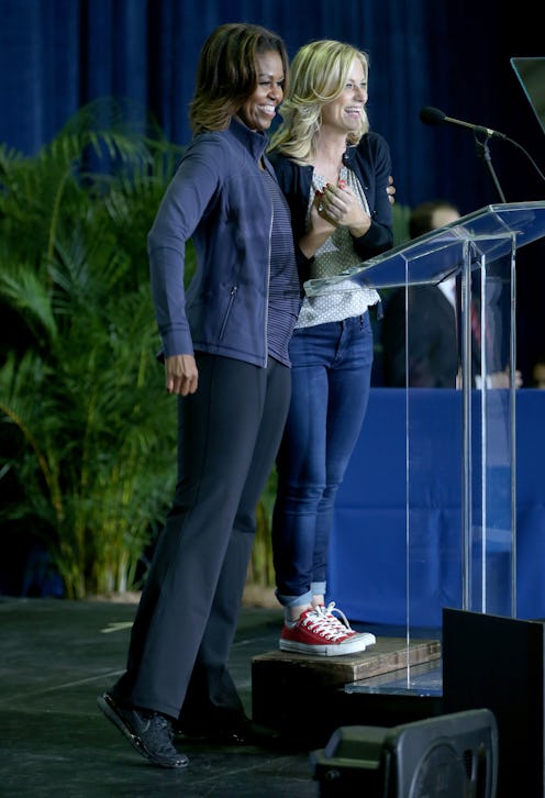 Leslie Knope is probably busy adding Feb. 25 to her holiday calendar right now — because it's on that day that Michelle Obama called Amy Poehler her "best friend" at a celebration for the Let's Move! initiative in Miami, Fla. And we all freaked out because apparently, the FLOTUS loves Amy Poehler as much as we do. The Parks and Rec star introduced Michelle Obama to the podium at the promotional event for the program that aims to help children grow up to be healthy, and the pair shared a sweet little friendship moment.
