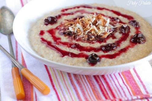 Sure, oatmeal with jam is a tried-and-true pairing, but this gets points for its complex flavors and attractive presentation. Even the most reluctant breakfast-eaters won't be able to resist this combination of tart cherry preserves and sweet, crunchy coconut.