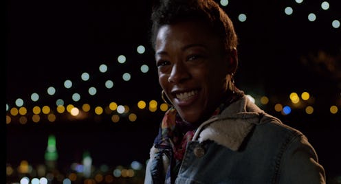 Orange is the New Black Season 4 doesn't end with a bang or a whimper [spoilers ahead]— it ends with a smile from the late Poussey Washington (played by Samira Wiley) in a flashback in Brooklyn as she looks directly into the camera. It's the first time the Netflix series has done something like this and I asked Samira Wiley herself about why Poussey breaks the fourth wall in the Orange is the New Black Season 4 finale. The powerful shot has been interpreted many ways — is it a message from Poussey from heaven? — but Wiley tells Bustle that the move was a last-minute decision by Orange is the New Black showrunner Jenji Kohan. "That's really the power of Jenji," Wiley says. "That wasn't anything but a split decision right in the moment."