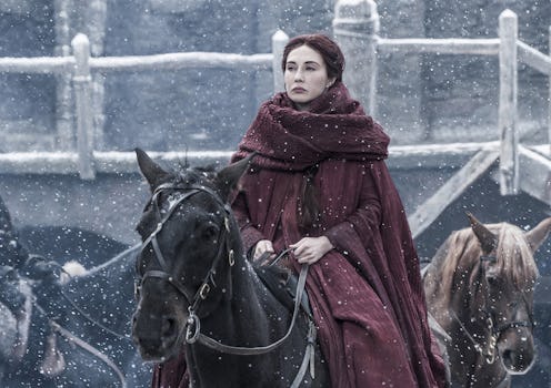 Melisandre joining up with Thoros, Beric, and the Hound sounds like the premise of a very excellent and twisted sitcommy spin-off (I'm pitching Three Men & A Priestess if HBO wants it), but if she does meet them on the road from Winterfell, they'd have some serious business to take care of. Thoros and Beric returned to the TV series when they reunited with the Hound and recruited him to help them stop the "cold winds" that are "rising in the North" — aka, the White Walkers. This is definitely a purpose that Melisandre would support since she told Jon how she'd be able to help him win the war against the army of the dead. So this foursome could be essential in stopping the Night King with both Thoros and Melisandre having the power to perform resurrections, courtesy of the Lord of the Light.