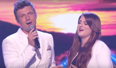 If you're a lifetime member of the Backstreet Boys fan club who has often dreamed of performing a duet with the still-fabulous boy band, then prepare to set your envy levels to maximum. On Friday night, fellow lifetime member of said fan club, Meghan Trainor, performed a duet with the Backstreet Boys — and she totally got to live all of our dreams, you guys. Singing the classic ballad "I Want It That Way," Trainor joined the still terribly handsome Backstreet Boys (who even wore their similar white suits as those from the original video for the performance) on stage during ABC's Greatest Hits show, and it was beyond spectacular. In fact, it's so good that if you happen to be a fan of both the singer and the boy band, you're probably already wondering, can you download the Meghan Trainor and Backstreet Boys "I Want It That Way" duet?