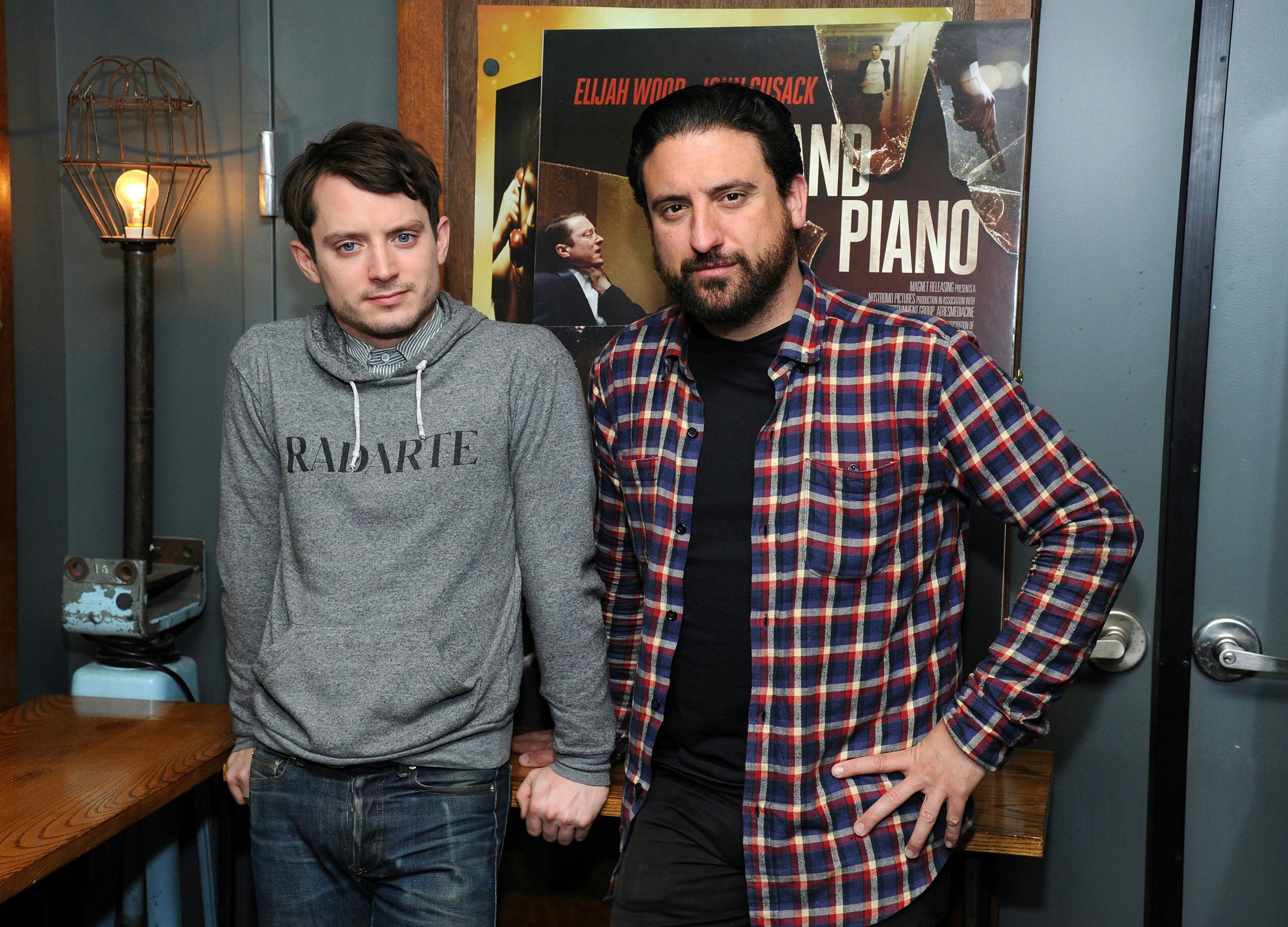 "Play one wrong note and you die." These are the words Elijah Wood's character finds scrawled across his sheet music the moment he is about to start playing in front of Chicago's most critical audience. His hands steady on the piano's black and white keys, and he sees a small red dot materialize on the paper, then snake up his arm, his chest, and land dead center in between his eyes — one wrong move, and he dies. Bustle spoke with the film's star, Elijah Wood, and the film's director, Eugenio Mira, about creating the suspenseful thriller that is Grand Piano .