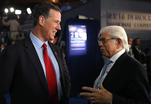 And according to Santorum's own Twitter account, he was at the convention for an "RNC at the DNC" event, where he spoke about presumptive Democratic nominee Hillary Clinton with RNC chair Reince Priebus and Matt Schlapp of the American Conservative Union. The GOP is likely going to capitalize on DNC's new email scandal over the coming week, and what better place to do so than at the Democratic Convention itself?