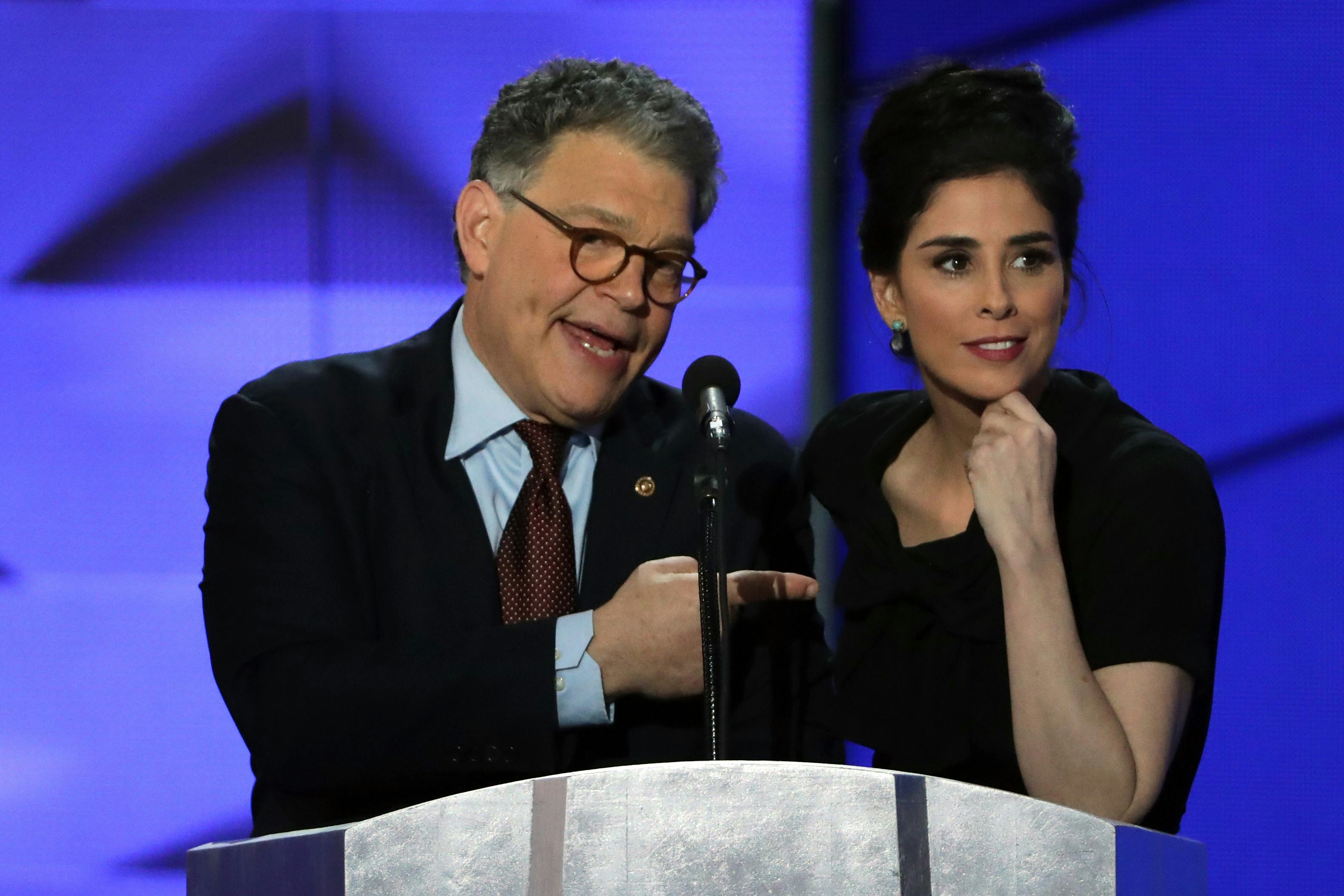 Amidst chants of "Bernie, Bernie!" at the Democratic National Convention, Sarah Silverman told Bernie-or-Bust supporters they're being ridiculous. The comedian was just one of the star-studded speakers making an appearance on the first night of the much-anticipated convention. She shared the stage with longtime Clinton supporter Sen. Al Franken of Minnesota and in classic Silverman style, directed some punchy jokes towards the Republicans. A dedicated Sanders fan who vocally supported him throughout the span of his campaign, Silverman's tone became more serious as she told the audience that she's fully supporting Clinton.