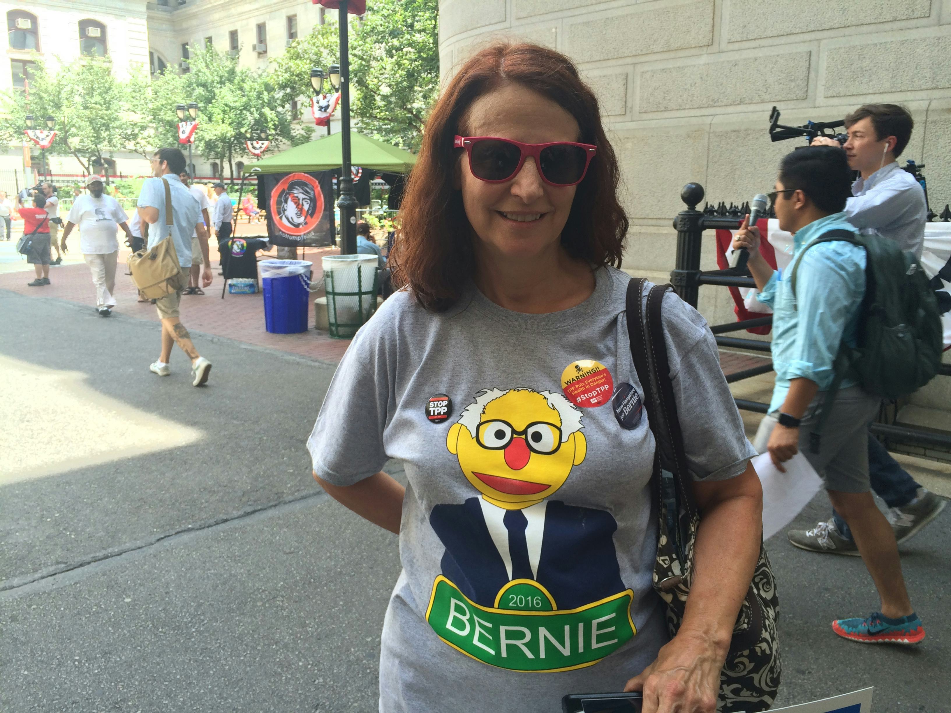 Smith, a volunteer for the Sanders campaign, hails from New Bedford, Massachusetts, and traveled with her husband and a couple friends to the convention to "work the outside." She says she watched a live stream of Sanders' DNC speech, and it had a strong emotional impact on her.