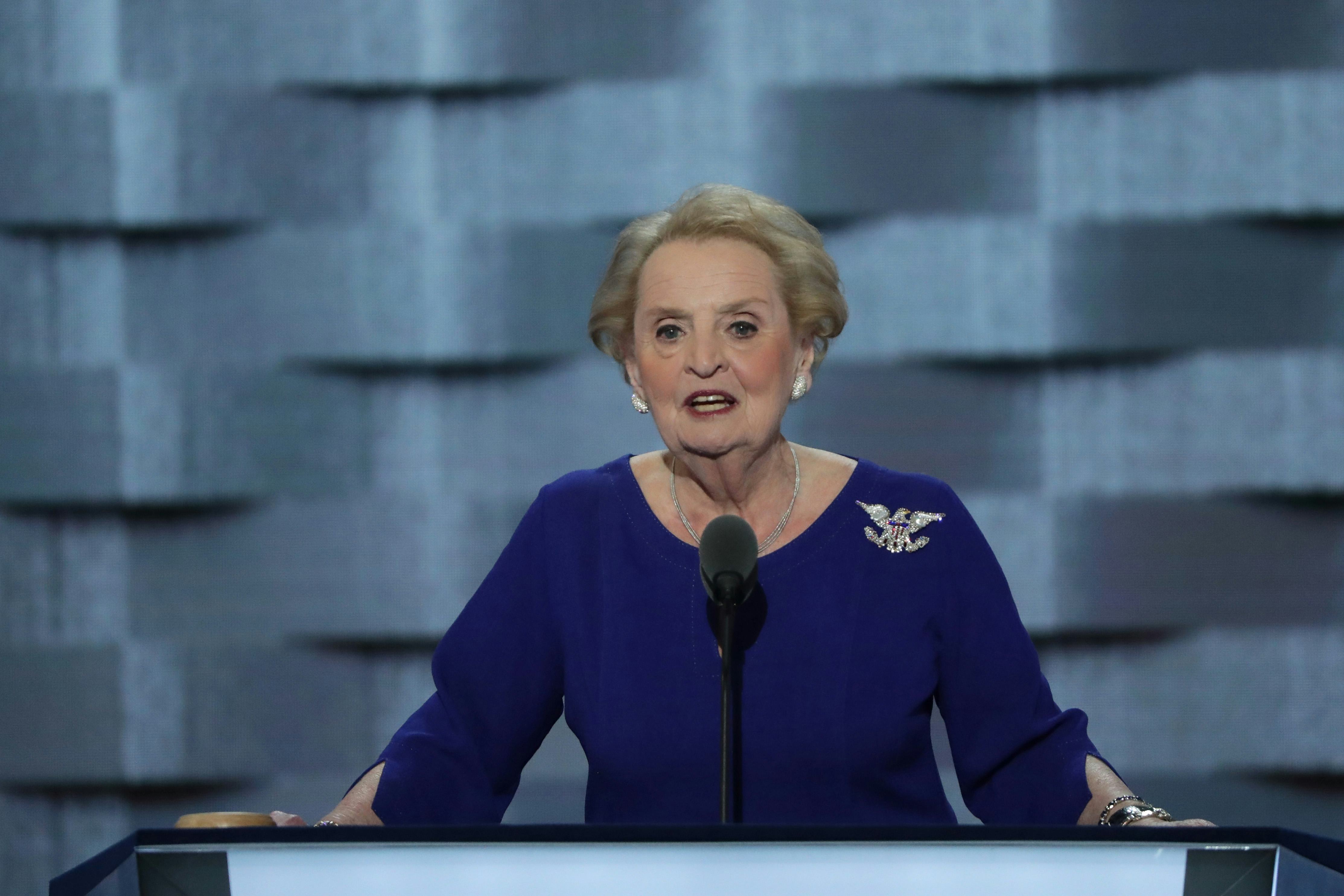 Albright began campaigning for Clinton in February, when her remarks about feminists supporting Clinton sparked controversy. On Tuesday, she was given another chance to explain to the nation why she believes supporting Clinton in November is so vital. After reminiscing on her childhood in communist Czechoslovakia, she recalled some memories from the Bill Clinton presidency, when she and Hillary Clinton did some traveling together. Her recollection made it seem as though they were old friends. Both she and Clinton, she said, went to the same college, are mothers and grandmothers, and understand the responsibility that comes along with representing the United States. And according to her, Clinton's vision of America is not as dark or intolerant as that of Donald Trump.