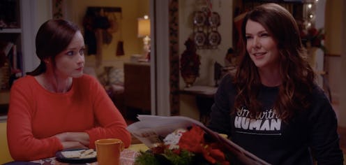 But that's not all the fandom observed from the trailer: who could miss Lorelai shielding her midriff with a newspaper? Pair that with a "I'm With Human" sweatshirt peeping over top, and the dialogue quickly shifted to the possibility of Lorelai being pregnant. Does this new development invalidate that theory?