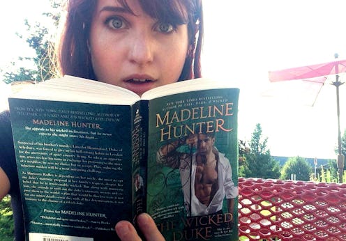 I decided that the novel I chose had to meet two requirements: The cover and title had to scream "steamy romance book," and it had to have a plotline I thought I'd enjoy. I wasn't just out to make myself feel uncomfortable; I also had to give romance a chance, and that wasn't going to happen if I didn't enjoy the story I was reading. In the end, I settled on Madeline Hunter's The Wicked Duke. It centers around the story of a hunky (but possibly kind of evil) duke trying to eliminate himself as a suspect in his brother's murder and his impending marriage to an initially unwilling maiden who wants to expose him for what he is while fighting her urge to expose him in other ways, if you know what I mean. Scandal! Conflict! A dude named "Lancelot Hemingford" who apparently doesn't know how to button a shirt! I was into it.