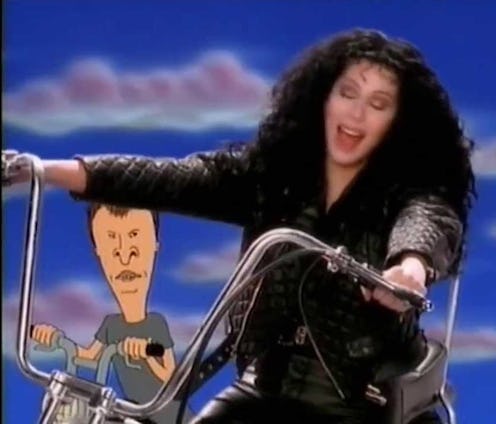 Oh, Cher, honey — no. Like, let it be known that I wear my Cher Fan Club badge of honour with pride, but thinking that it would be a good idea to have cartoon goofballs Beavis and Butthead grunting and sniggering away in the background of one of her classic songs? Nope, nope, and hell nope.