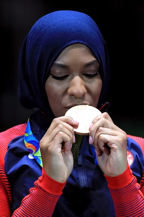 Don't look now, but the 2016 summer games in Rio have brought about yet another piece of Olympic history — Ibtihaj Muhammad and the U.S. women's fencing team have won the bronze medal in the team sabre event, finishing in third place (behind Russia and Ukraine) after dispatching Team Italy. And beyond just the fact that it's a big day for American fencing — the team also won the bronze in the team sabre event in 2012 — it's also noteworthy because of Muhammad's Muslim faith, and how she publicly expresses and adheres to it.