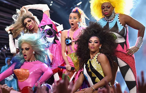 With Key, Peele, DJ Khaled, Pharoah, and Byer acting as hosts, it seems like the 2016 VMAs will be more racially inclusive than in years past, which is definitely a great thing — particularly when you consider what happened at the 2015 show. After Nicki Minaj entered a brief Twitter feud with Taylor Swift due to Minaj tweeting that she believed the VMAs recognize white artists and "women with very slim bodies" more than women of color and varying body types, Cyrus gave her opinion on the situation. Cyrus criticized Minaj to The New York Times before the VMAs occurred, claiming the rapper made the larger issue of diversity at the VMAs about her, which led to Minaj saying, "Back to this b*tch that had a lot to say about me the other day in the press — Miley, what's good?" when she accepted the award for Best Hip-Hop Video during the awards show.
