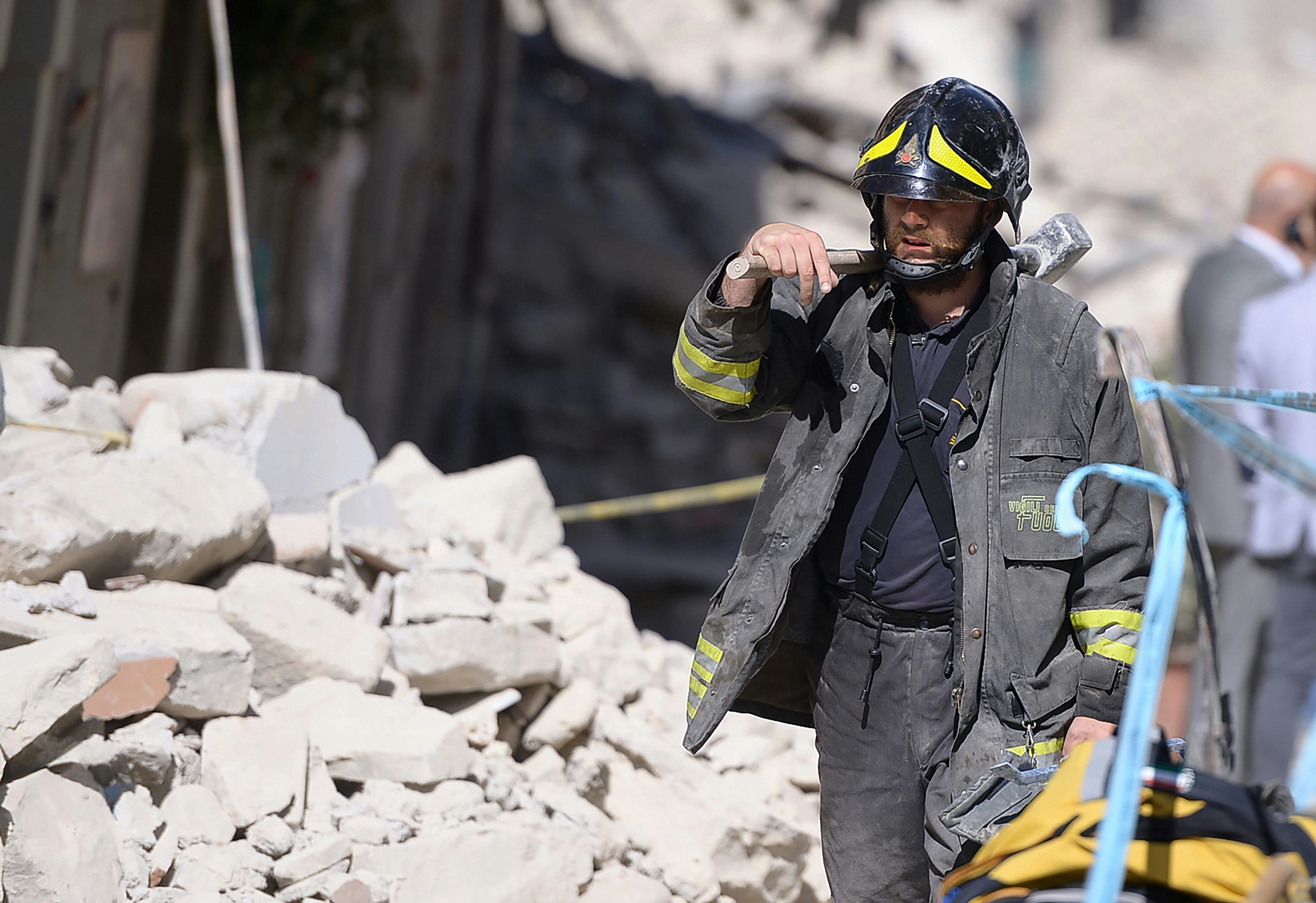 While there isn't yet video footage available of the moment the earthquake struck, there is video showing the scope of the damage, and most striking is the excess of rubble, which is proving to have devastating effects. Amatrice Mayor Sergio Pirozzi spoke to RAI state television about the wide-scale damage in his mountain village: "We have extracted several dead bodies but we do not know how many there are below...There are dozens of victims, many under the rubble. We are setting up a place for the bodies." The Red Cross put out a statement earlier today saying that several people have been pulled out alive from the many stockpiles of rubble this morning. In the video below, you can glimpse the damage as locals try to navigate through the rubble: