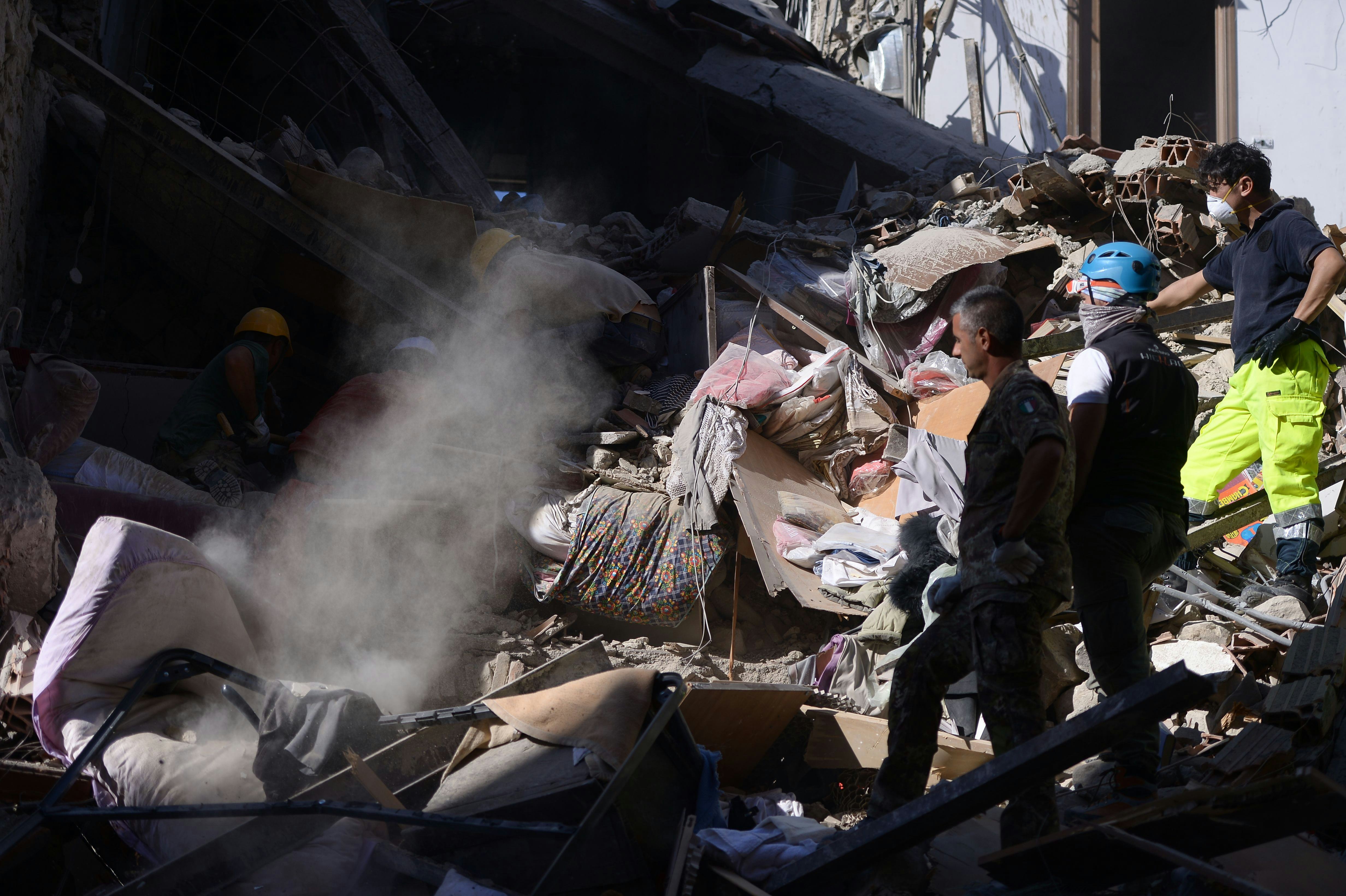 While 120 have been reported dead so far, there are hundreds missing, and thousands of people have been temporarily displaced and/or left seemingly homeless in the mess. The Guardian's latest update reports that an eight-year-old girl has just been pulled out alive from beneath rubble in Pescara del Tronto, one of the three towns most severely impacted in Italy's central region. According to the Associated Press, residents were awakened before dawn due to the strong tremors, and they later likened their local areas to that of apocalyptic scenes "like Dante's Inferno" as they looked around.
