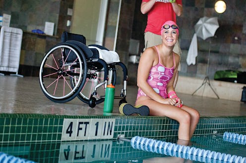 Imagine walking into the doctor’s office for a routine procedure — one you’ve received twice before without complication — expecting to walk out a couple hours later feeling better only to be transferred to a hospital, permanently paralyzed below the abdomen. That’s what happened to Paralympic swimmer Mallory Weggemann, who was just a freshman in college when she became paralyzed in January 2008 following a simple lumbar epidural injection to treat post-shingles back pain. What Weggemann did from that point forward, however is what defines her — she got back in the pool. "Once I finally took that leap of faith and got in the water, within four or five strokes, I fell in love with the water all over again," she tells Bustle.