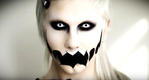 This rad tutorial provides two ghostly looks in one; when the wearer is seen under a black light, a set of scary teeth appear. As the vlogger suggests, it's an awesome way to give people a scare!