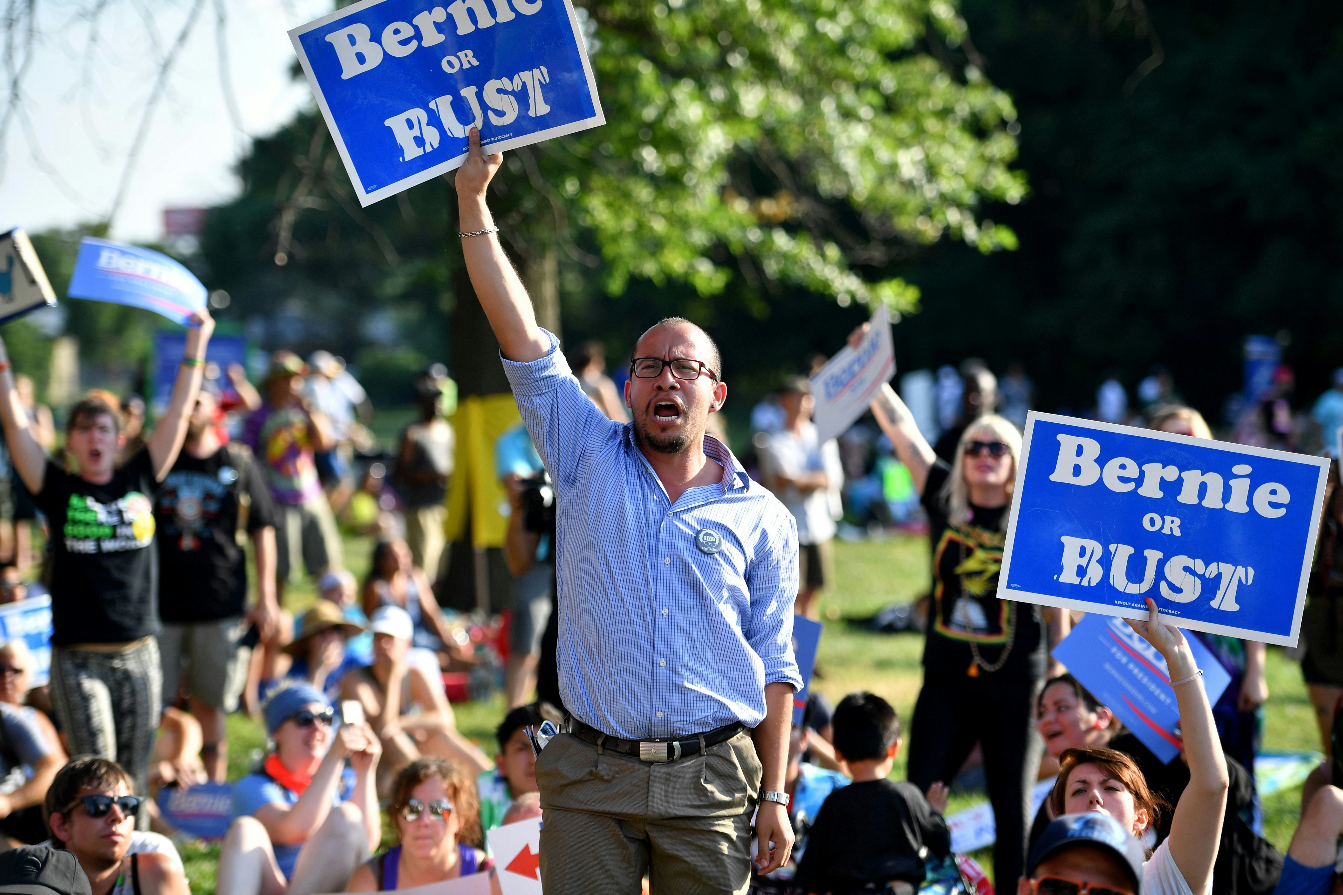 Bernie or Bust is a faction of Sanders supporters that, during the Democratic primary, pledged to not vote for Hillary Clinton if she won the nomination. This struck fear into the hearts of many Democrats, who feared that, in a close race, even a small defection of potential Clinton voters could effectively hand the presidency to Donald Trump.