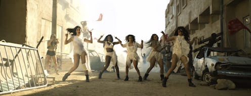 In the music video, Camila Cabello, Lauren Jauregui, Normani Kordei, Dinah Jane, and Ally Brooke are seen strutting through what appears to be a desert-like, dystopian city as they fight alongside the women around them to rebuild what's been lost. However, through the use of their outfits and their attitudes, the members of Fifth Harmony and the actors within the music video also happen to be telling a much larger story: as in, all of the stories of the popular heroines movie-goers are already familiar with, blended together into one epic.