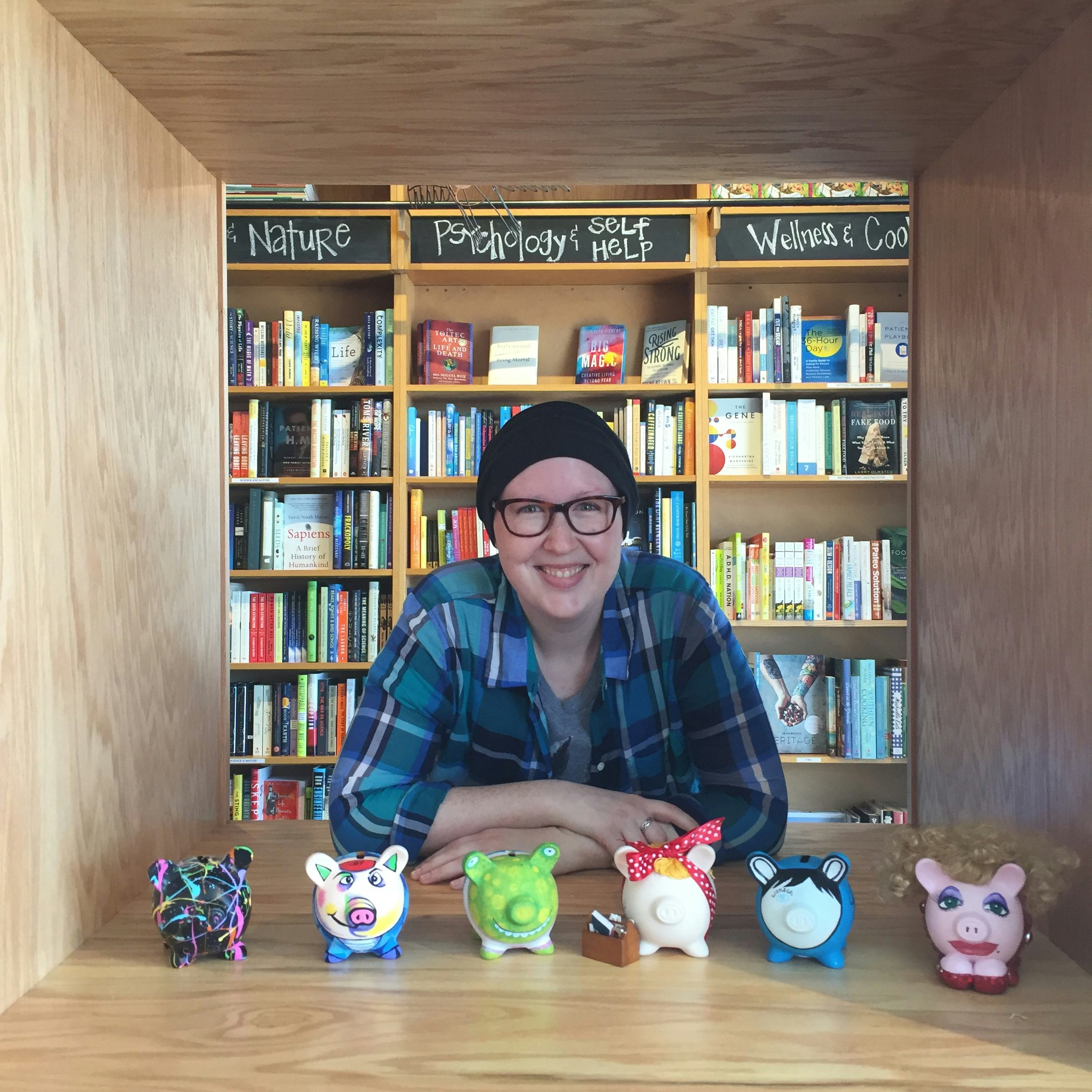 When her colleagues heard the news, they started formulating a plan to help Stephanie pay her medical bills. They knew a few authors would be coming into town for book signings, so they decided to ask them each to decorate a piggy bank, which they could then sell at an auction. What happened next was totally unexpected: these authors each told their friends, who told their friends, until Parnassus Books had collected over 100 piggy banks decorated by authors and illustrators. The contributors range from beloved YA authors like Sarah Dessen, Rainbow Rowell and John Green to big-name celebrity authors such as Lauren Graham, Grace Helbig and Connie Britton. Each contributor has personalized a piggy bank, which will be auctioned online starting Sunday night. Check out some of the gorgeous designs you could bid for.
