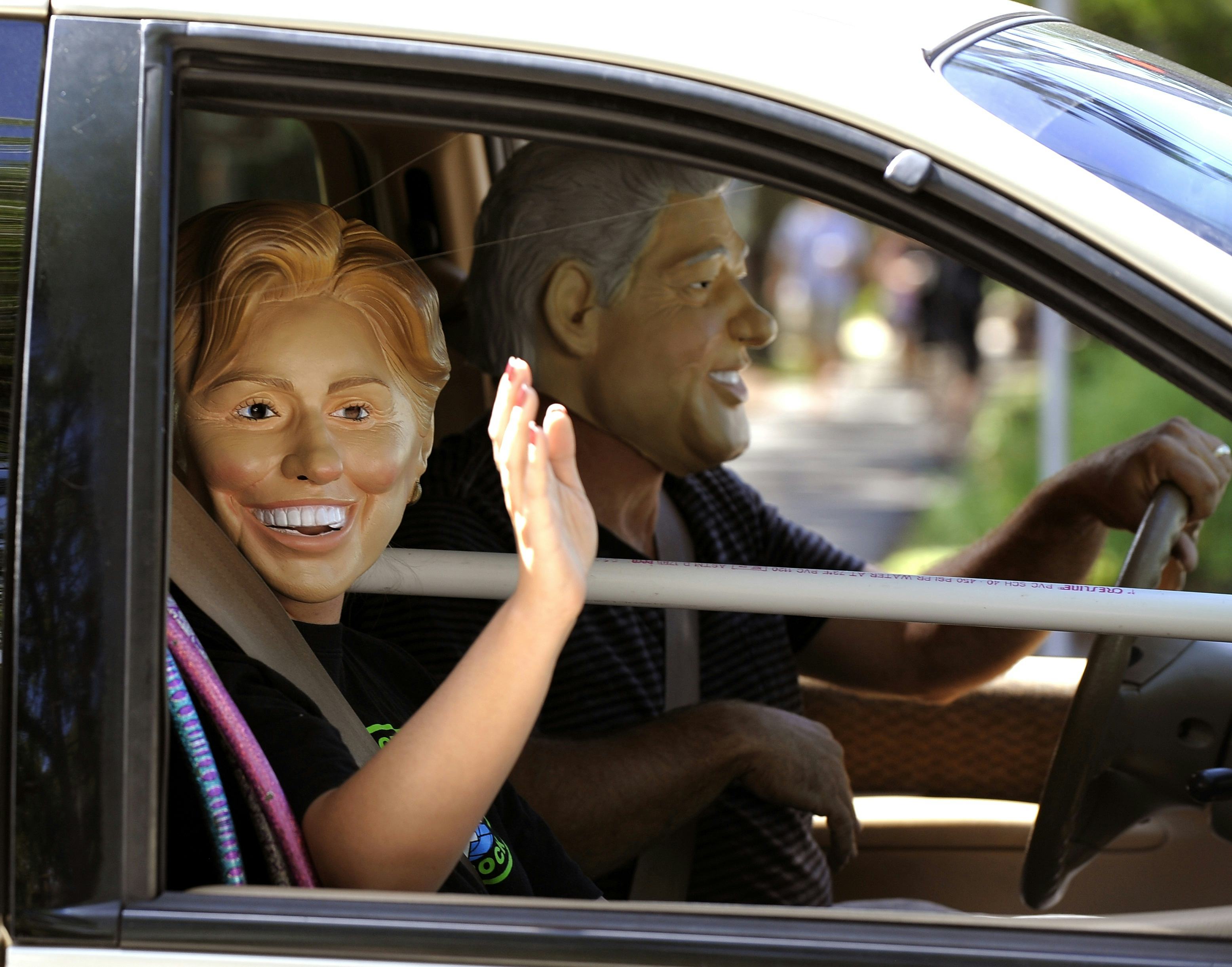 Alternatively, you could also opt to don a Clinton mask or go the ultra budget-friendly route and simply carry Clinton's image on a stick.