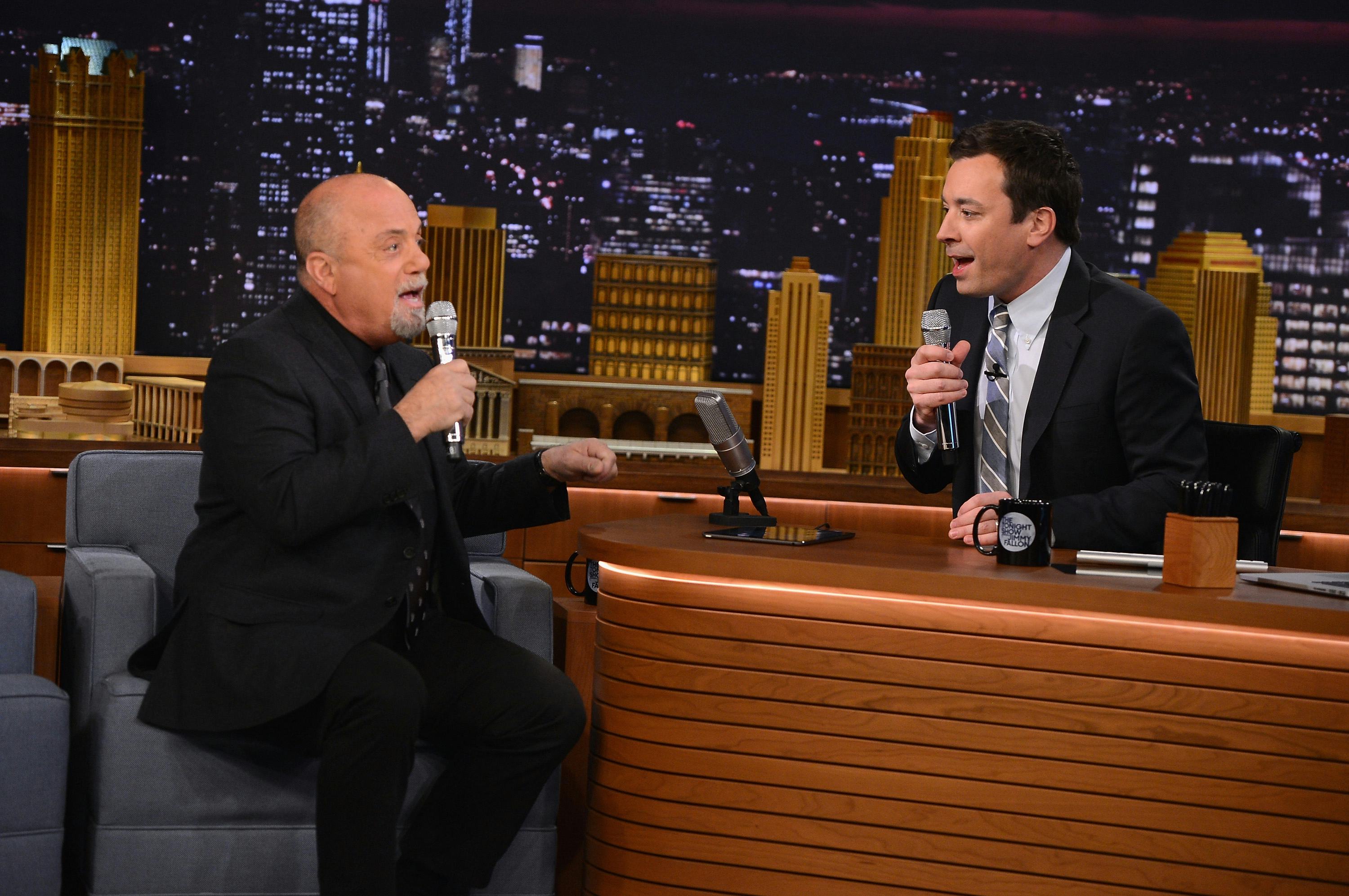 Fallon, who was stoked to have Joel as a guest, found a way to fulfill his dream of singing with the Piano Man. He showcased an iPad looping app (which you must download if you, like myself, dream of harmonizing like En Vogue circa 1992 by yourself). They recorded different harmonies to "In The Jungle," creating the signature "aweema-wep" backing vocals, and then sang the lead vocal line over it. It sounds great — if you're a sucker for a cappella harmonies, this will surely be right up your alley, but what makes it truly a joy to watch is the look on Fallon's face as the entire thing comes to fruition.