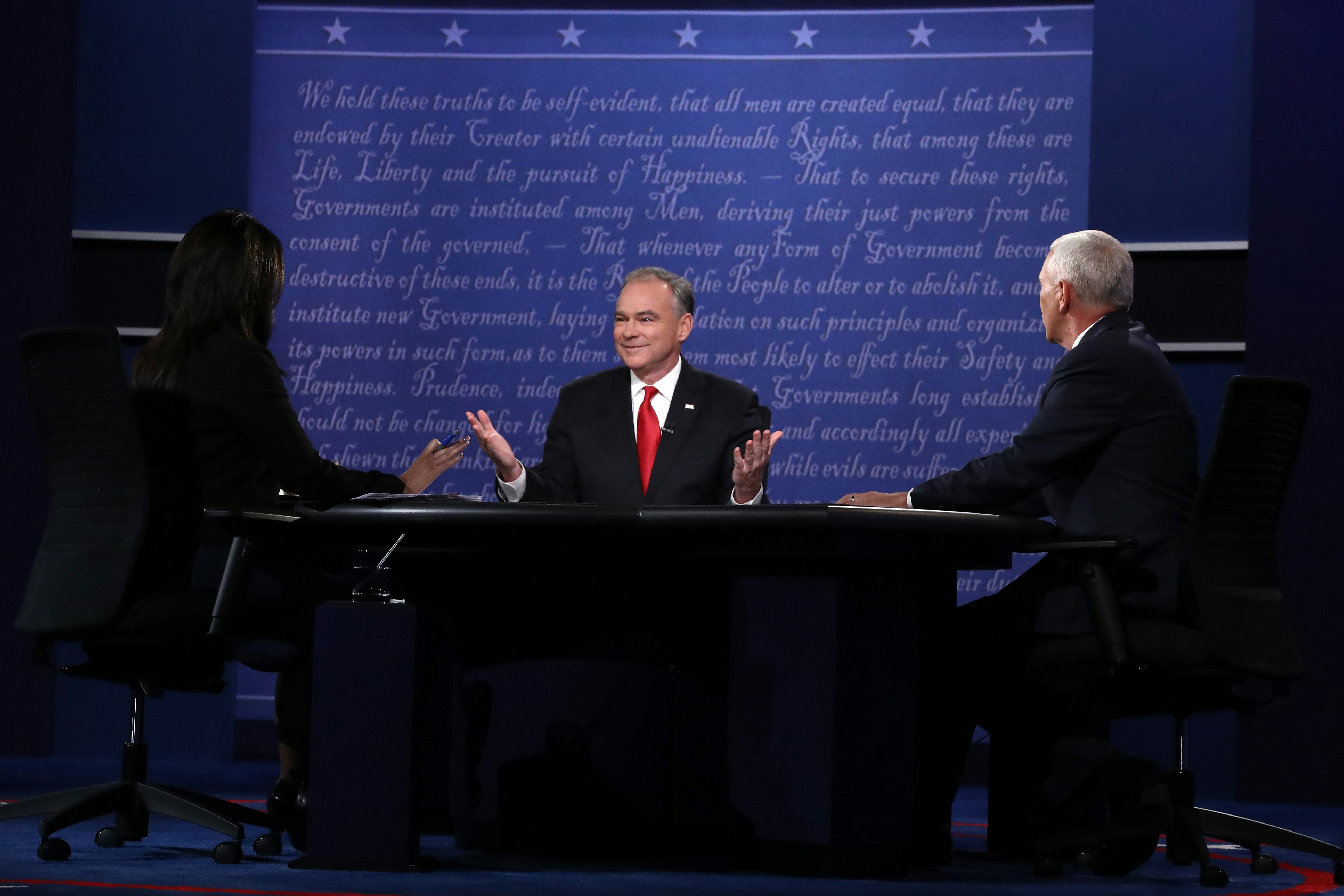 Near the end of Tuesday night's vice presidential debate, I briefly moved a tiny bit closer (though not that close) to the edge of my seat. The moderator, Elaine Quijano, posed a question that was almost asking for Democrat Tim Kaine to attack Republican Mike Pence. "You have both been open about the role that faith has played in your lives," Quijano said. "Can you discuss in detail a time when you struggled to balance your personal faith and a public policy position?"