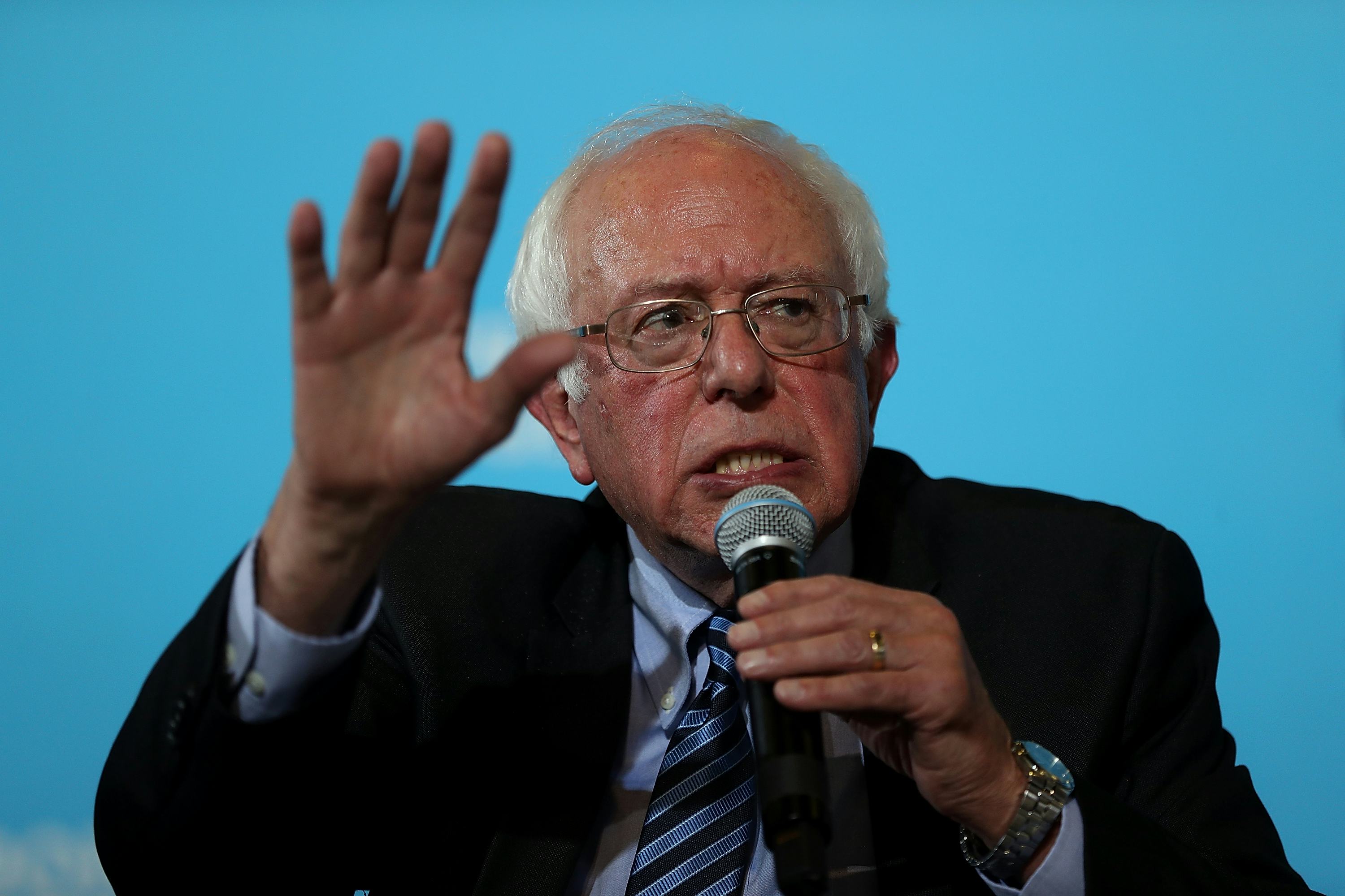 Even though Sanders has not shared his own two cents, that didn't stop Trump from mentioning the senator. In a series of follow-ups to a question about Trump's lewd comments about women in which he bragged about committing sexual assault, Trump brought up Sanders and the Democratic primary: