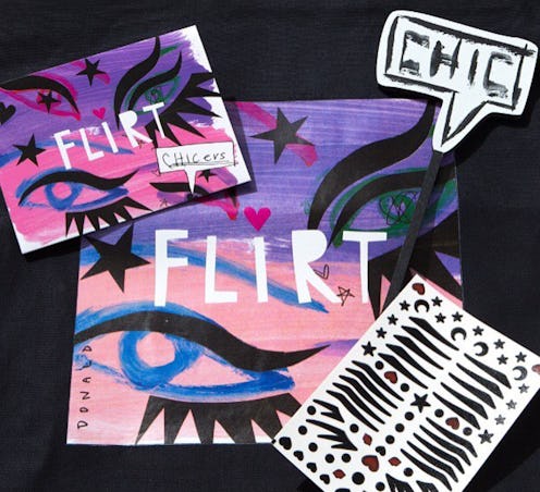 Flirt Cosmetics rebooted with an edgy innovation — the Flirt Flashes false eyelash applicator, which takes some practice in order to use correctly. The brand is doing super fun, non-standard things — sorry, no new lip gloss shades or eyeshadow textures here! That's practically snooze-worthy for Flirt, which also boasts a loud, bold, and beautiful aesthetic with its packaging. Flirt is now doing temporary makeup tattoos aka Flirt CHIers. That's Chic + Stickers and it = CHICers.