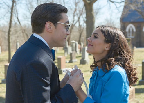 On Thursday night, FOX's Rocky Horror Picture Show re-imagined movie brought the spirit of the 1975 original flick into homes everywhere in 2016. After being literally ushered into the film with the slow jam "Science Fiction/Double Feature," the audience meets cute young couple Brad (Ryan McCartan) and Janet (Victoria Justice). Together, they sing "Dammit Janet" in FOX's The Rocky Horror Picture Show while dancing in a cemetery, showing that love can blossom — and get engaged — anywhere, really. Even right by some kind of spooky graves.