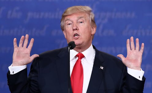 This moment in the debate was perhaps just as strange as a taping of The Apprentice. Trump had just finished saying that the election was rigged against him, and that he would keep the American public "in suspense" as to whether or not he would accept the final results of the election, should he lose come November 8 (in keeping up with the reality television style, of course).