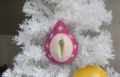 If you still have the words "grab them by the pussy" ringing in your ears all election season long, then go ahead and drown them out with the ringing of the jingle bells on these vagina-shaped Christmas ornaments on Etsy. Because as eternal as this garbage fire election may seem, the truth is, it will all be over in two weeks — just in time for everyone to remember that we have been so busy preparing for the apocalypse that we totally forgot about all that holiday shopping we usually do when we're not too busy crying into our breakfast cereal when we read the morning news. And what better way to treat your fellow feminists/nasty women after enduring the rampant sexism of this election cycle than gifting them with arguably the most feminist Christmas ornament of all time?
