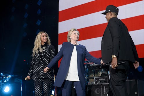 On Friday night, you could find the invincible trifecta that is Beyoncé, Jay Z, and Hillary Rodham Clinton hanging out in Cleveland, Ohio, at a rally intended to raise momentum for Clinton going into Election Day. "Less than 100 years ago, women did not have the right to vote. Look how far we've come," Beyoncé said in a speech about Clinton prior to her performance. She went on to perform in a custom-made pantsuit in a clear homage to Clinton.