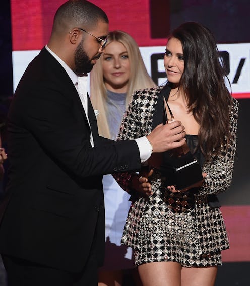 While accepting his first 2016 American Music Award, Drake gave Degrassi a shoutout and praised his former co-star on the show, Nina Dobrev. The actress presented Drake with the award for Favorite Rap/Hip-Hop album at this year's ceremony. As he took the stage, looking fly as hell, one thing became abundantly clear: we were about to witness a one-in-a-lifetime reunion. For those diehard Degrassi fans out there, you'll recall that Dobrev and Drake had starred on the hit teen Canadian drama around the same time, basically meaning that they are totally bonded for life.