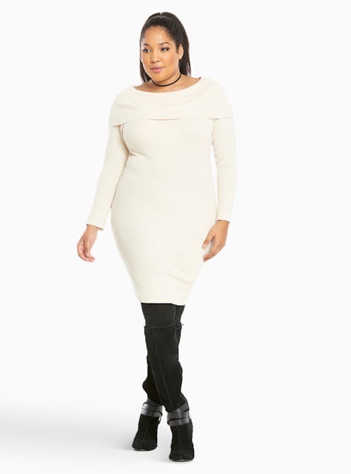 Off Shoulder Sweater Dress (Available to size 24), $90, Eloquii