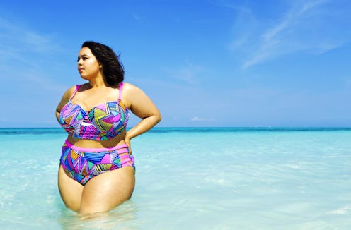 What's brilliant about this piece (and last year's suits for that matter) is that it's unapologetic. So many plus-size women live in fear of wearing a two-piece bikin because the idea that fat is unattractive is so engrained in our minds. But fuller-figured women can and should be able to feel beautiful in their clothes, including their bathing suits. And this bikini, with its bright colors, bold patterns and sexy slits, may just be the key to looking and feeling good this swimsuit season.