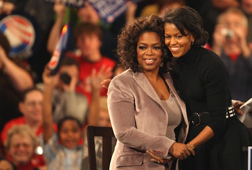 As reported by the New York Times, Oprah endorsed Barack Obama for president as early as 2007. After that, Oprah interviewed Michelle in 2009 for O Magazine and then both Obamas on The Oprah Winfrey Show in 2011. Then, in 2013, FLOTUS watched happily as her husband awarded Oprah the Presidential Medal of Freedom. Most recently, Oprah and Obama spoke about gender issues at the United State of Women summit. But it's not just political meetings and interview for these friends — the women also vacationed together at Oprah's Maui mansion.
