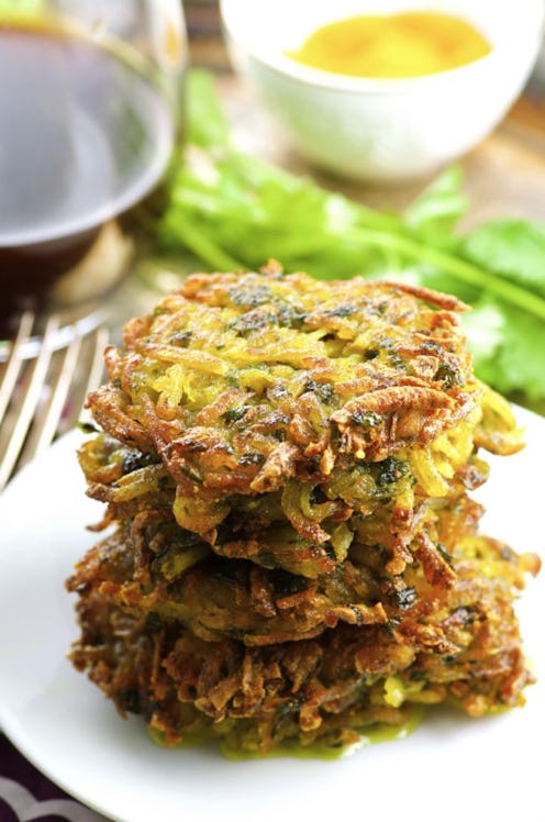 Go beyond traditional latkes by making these amazing samosa potato pancakes by Minimalist Baker. I mean, everyone knows samosas are the best appetizer, so why not make them into latkes?