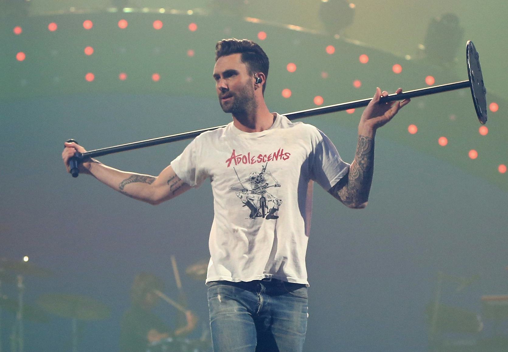 So... the sexiest man alive altered his appearance. Adam Levine has shaved half of his head. Like, hair is gone. WHERE DID IT GO?!!? Cue song. He demonstrated this new look that he is rocking (yes, ROCKING) at The Voice's Season 6 private concert, and... it's definitely interesting. It's not quite on the level of Skrillex's oddly trendsetting maine-not-quite-maine look that confounded folks two years ago, nor does it even deserve comparison to Natalie Dormer's new haircut (she shaved half of her head off for her role as Cressida in Mockingjay, parts 1 and 2), but nonetheless — it still warrants a DISCUSSION.