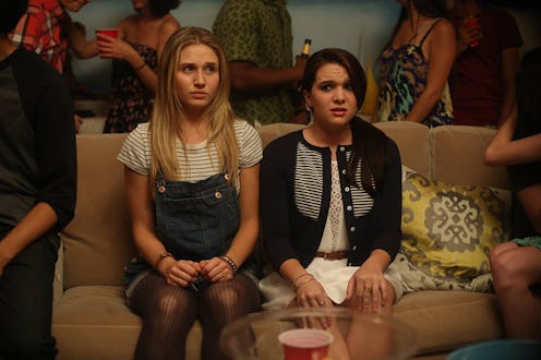Before we get into the nitty gritty, we'll give you some background. Amy (Rita Volk) and Karma (Katie Stevens) are BFFs of the "opposites attract" variety. Despite being raised by hippies, all Karma wants is to be popular, to go to parties, and have a hot boyfriend. No-muss, no-fuss Amy, on the other hand, is perfectly content to spend her Friday nights in her PJs watching House Hunters with her best friend. After a series of misunderstandings, the pair is labeled as a lesbian couple and entered into the race for Homecoming Queen(s).