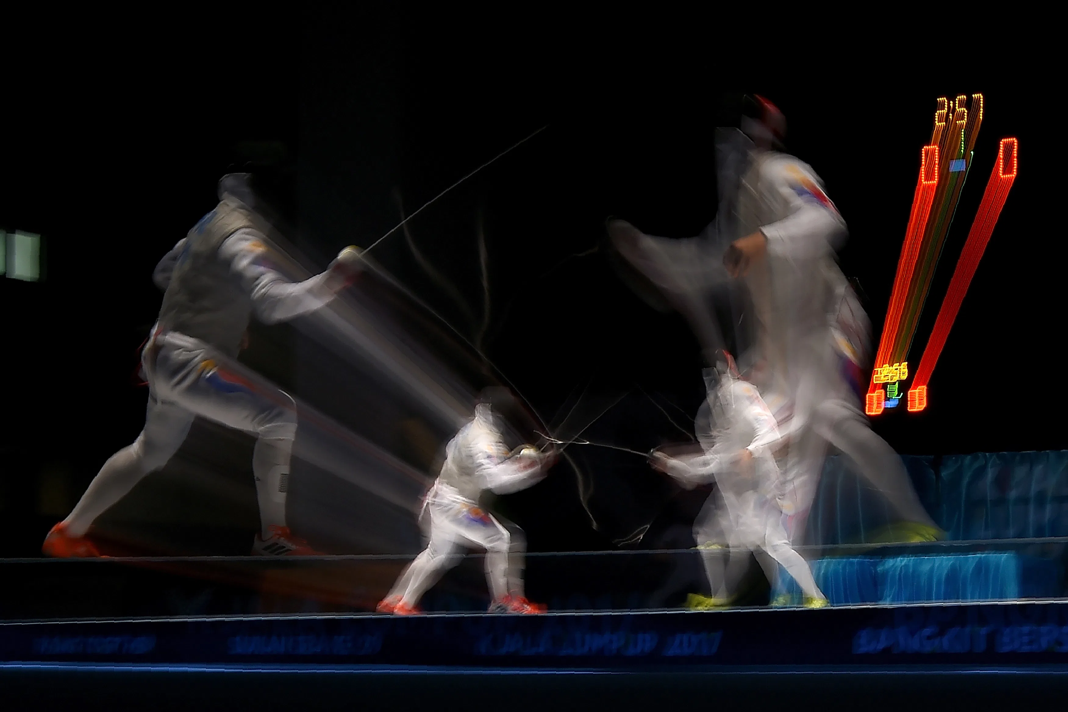 The video was first uploaded to YouTube in December of 2012, but it resurfaced on Digg the other day, allowing a whole new generation of Internet addicts to take in its glory. According to The Daily Dot, this stunt was filmed for a Japanese game show in 2012. The show asked three of the country's Olympic fencers — Kenta Chida, Ryo Miyake, and Suguru Awaji, who all won the silver medal in the team foil event at the 2012 Summer Games — to face down 50 amateur opponents. The rules of the game? Everyone had a balloon strapped to their chest (red for the Olympians, green for the amateurs); if the balloon popped, down you go. For the curious, looking at standard foil fencing here, which means your target is limited to your torso, you can only poke with your blade (no slicing and dicing), and your weapon has a tiny little hand guard. How did they do? Astonishingly well — but alas, this isn’t the movies: