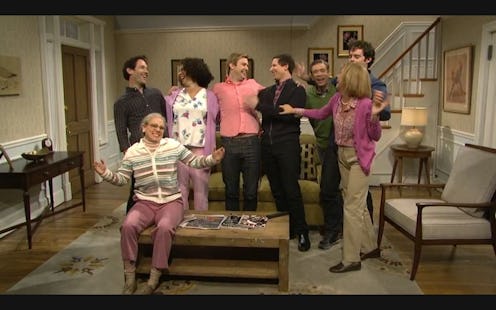 Of course, none of that even came close to the full-on guest cameo orgy that was the latest Vogelcheck family sketch. The Vogelchecks, as you'll recall, are the creepy, far-too-sexual family that kiss each other way too much. While the sketch often wears out its welcome, the gang was all there this time: Andy Samberg, Kristen Wiig, Fred Armisen, Maya Rudolph, and Paul Rudd all inappropriately smooched while Taran Killam looked on in horror. Sure, the sketch is gross and uncomfortable, but it's really hard to be upset when all of these people are on your TV together again. Especially when some of them break mid-sketch.