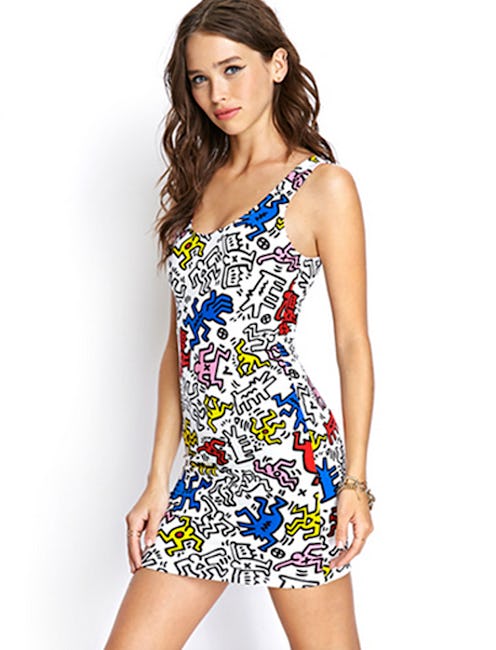 Forever 21's Artist Series is a line of cropped tanks and body con dresses printed with iconic images from Basquat and Haring's artwork. While I'm not sure the artists would be too thrilled to see their work on stretchy cotton garments meant to be worn by faux-counterculture teenagers, this kind of thing is what Forever 21 does best. I mean, did you see the Comic Collection they did awhile back? Super cool.