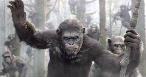 The apes are coming! The apes are coming! If you, too, find yourself imagining an installment of Planet of The Apes that involves a midnight ride of Paul Revere, you're not alone. After all, the new Dawn of The Planet of The Apes poster finds an ape riding on top of a horse with a rifle in the air, a la Revere in his regaled tale. And it is rather appropriate, since the apes are coming — to a theater near you. (BOOM. Couldn't help myself there.)