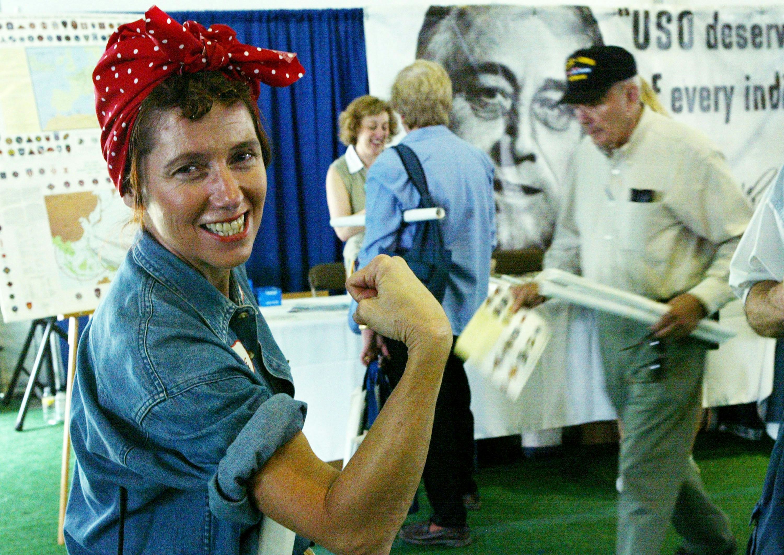 When most of the country's men shipped off to fight in World War II, countless American women left their place in the home for new roles in the workforce. 40,000 assembly line workers, including many women, worked in the Willow Run Bomber Plant alone. Rose Will Monroe (a.k.a. Rosie the Riveter) was employed there when Hollywood producers cast her in the role of a "riveter" for a government film on the war effort at home. Over the years, her image was transformed from a symbol of war propaganda to a symbol of female empowerment.