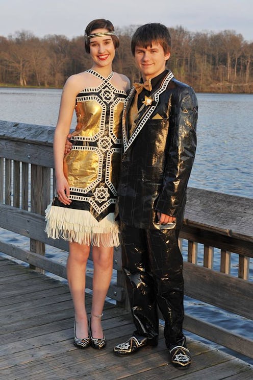 My prom dress shopping experience involved Saks Fifth Avenue and an on-sale Sue Wong dress featuring a lot of beading and purple silk. I looked nice, but certainly not as cool as the teens participating in Duck Tape's 2014 Stuck at Prom competition. They created prom outfits out of duct tape and the final results are incredible. Take that, Jessica McClintock! (Just kidding, we love you).