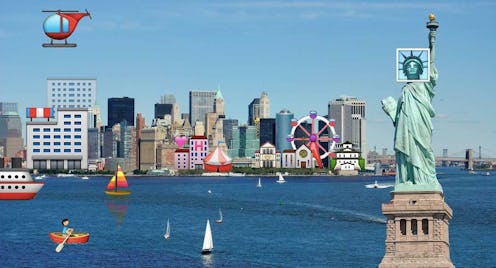 In advance of the show, Stoughton has unleashed some of his own creations on the world. Stoughton begins by taking large format emojis from everyone’s favorite iMessage character source, Emojipedia; he then edits them into photographs of actual places via the magic of Photoshop. Some of the characters he uses stand in for their real-life counterparts, like the Statue of Liberty’s face here: