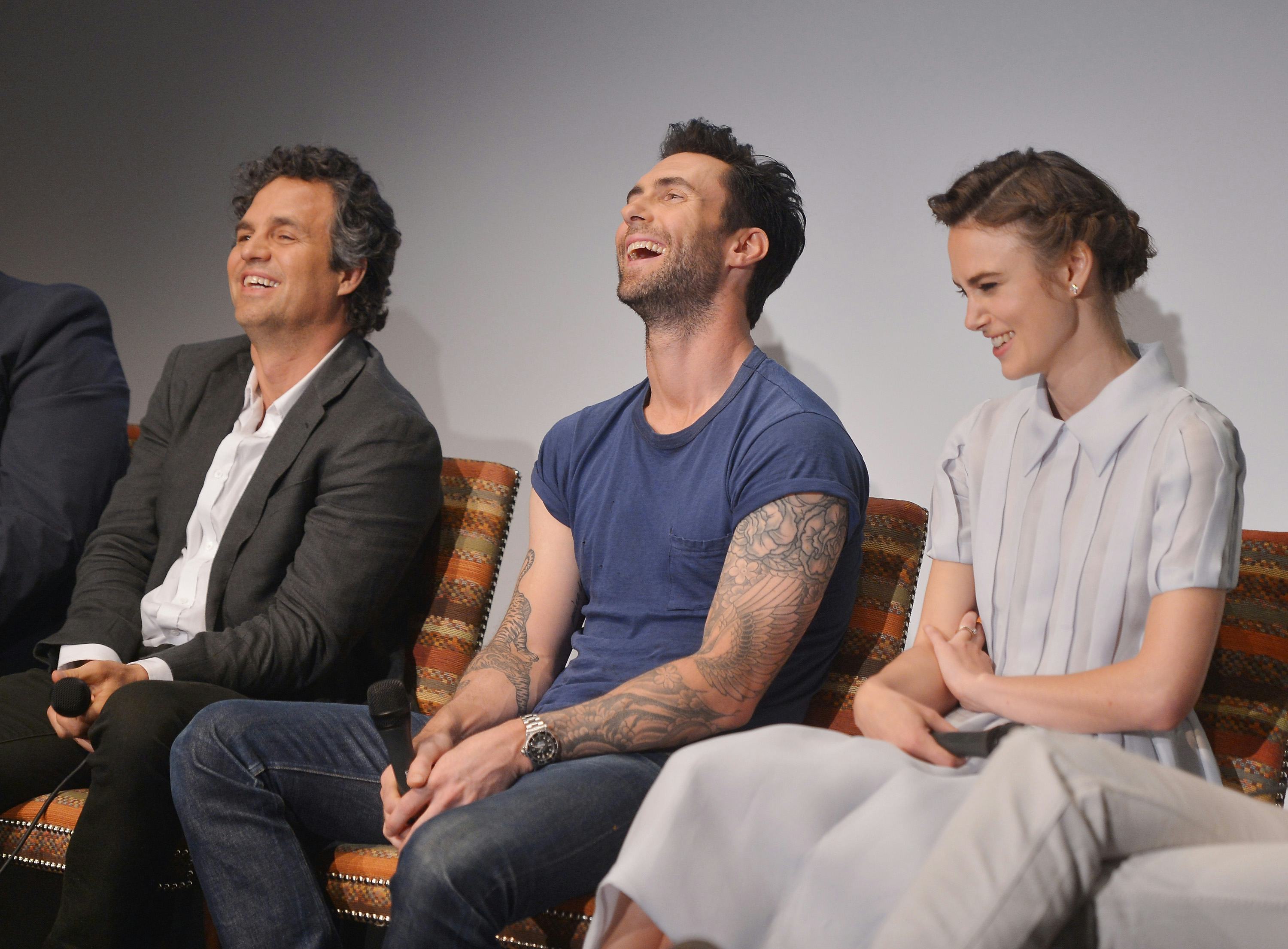 Ruffalo isn't exactly known for his singing ability. When asked whether or not he has any singing experience, the usually talkative Ruffalo gives a delightfully short answer: "No." He claims he had one song in the film, but "that was cut out of the movie. I was singing in the bathroom. It was supposed to be a Leonard Cohen song." Why did the scene end up on the cutting room floor? Director Carney jokes, "We couldn't get the rights to the song. At least that's what I told Mark."