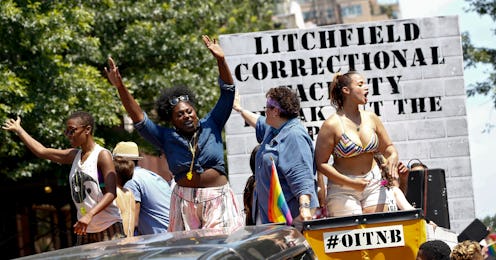 When the Orange is the New Black cast does something, they do not do it half-assed. After all, their minimum security prison in Litchfield is run like a well oiled machine thanks to Red's steel resolve and determination. Even though Red wasn't there to keep them in check on Sunday for the Gay Pride parades, the girls and Officer Bennett seemed to have the perfect parade etiquette covered. Apparently, she's taught her fellow inmates well. Yoga Jones would be proud of their camaraderie and commitment to social activism, for sure.