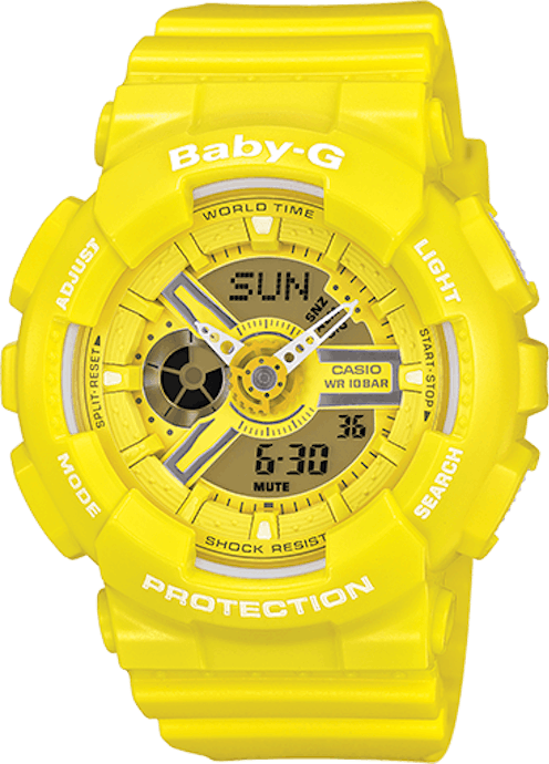 Baby G took the world by storm in 1994 when parent company Casio released the watch with its oversized, plastic dimensions and neon shades as an updated version of its G-SHOCK watch, convincing 13-year-old girls everywhere that this was the watch to end all watches. The Baby G seemed to be the sartorial equivalent of a mood ring, with a color and style for every temperament, and now it appears the company is poised to take the fashion world by storm again with its new designs. Feeling minimalist? The transparent option of the Baby G BA110-7A2 is as close to subtle as the label permits. Looking to embrace spring with pastel accessories? The BA111-4A2 with its delicate salmon band adds a pop of color. And if your heart is still in 2002, Baby G’s BGA170-7B2 is “#classic” according to the new Baby G Twitter page. If you’re asking yourself why Baby G has a Twitter account, it’s because the unthinkable has happened: Baby G is back with a vengeance. Granted, the company’s Twitter only has 682 followers, so the Baby G empire hasn’t quite hit yet, but the little brand that could is determined to regain its former place of pride amongst watches.