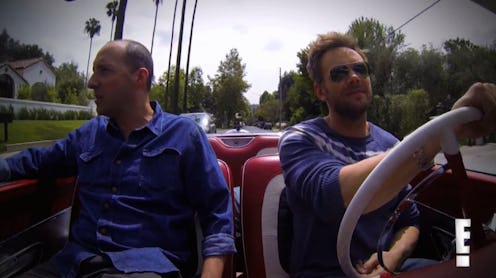 In the clip, which is fashioned shot-for-shot the exact same way Comedians in Cars Getting Coffee is, we see McHale driving down a residential street in LA introducing the episode's retro car: A 1959 Ford Skyliner with "a convertible hard-top, it's painted flame red with colonial white, a 300 horsepower engine, and a 352 cubic inch V8." It's certainly a car worthy of Seinfeld himself, but what happens next really, really is not: McHale picks up the episode's "guest," Veep star Tony Hale, and the two drive around LA talking casually about doing cocaine and pointing out the massive amount of cokeheads they pass on the street. Still, though, things don't take any crazy turns until the duo actually goes to get the cocaine...and, to say the least, sh*t gets real. I won't spoil the details for you because it really is better if you just watch the episode unfold in the clip, but I will say that Hale's ability to handle a gun is rather surprising.